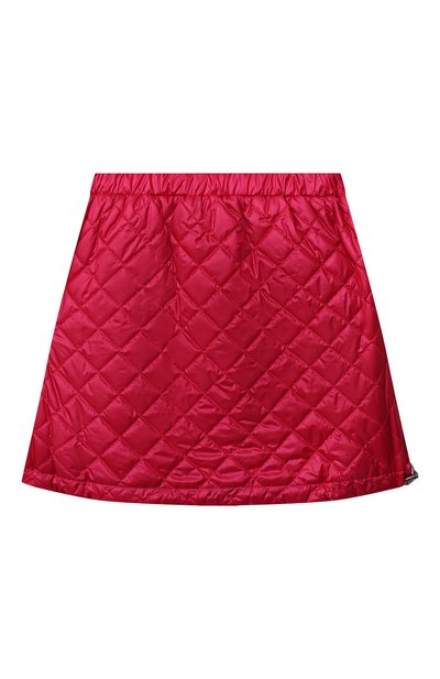 Мастера марки сшили ярко-розовую юбку из гладкого шелковистого нейлона со стеганым геометрическим узором, которому придали объем при помощи легкого наполнителя. Вещь из такого материала не мнется, меньше пачкается и не требует специального ухода. За удобную посадку на талии отвечает эластичный пояс, а изменять силуэт м ожно регулируемой кулиской на подоле.