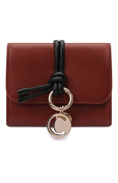Аксессуары линии Alphabet легко узнать по подвескам. Не стало исключением и коричневое портмоне: знаковый декор будто привязали черными шнурами. Модель изготовили из мягкой прочной кожи. Основное отделение для банкнот дополнили шестью слотами для кредитных карт. Снаружи разместили карман для монет.