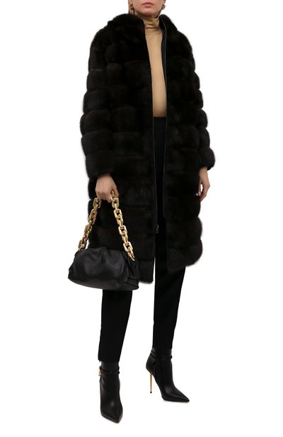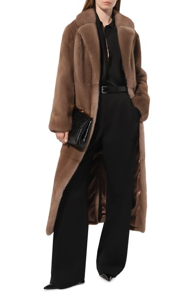 Шубу медного оттенка выполнили из невероятно нежного меха норки с благородным блеском. Шкурки тщательно отобрали не только по цвету, но и по длине и направлению остевого ворса, чтобы создать эффект цельного полотна. Такая модель из осенне-зимней коллекции бренда, основанного Григорием Саломоном, доказывает, что выглядеть элегантно можно и в суровые русские морозы.