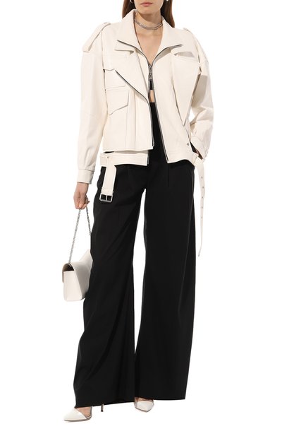 Белая куртка с объемным капюшоном станет удачным спутником для прогулок в прохладную погоду. Модель выполнили из мягкой плотной шерсти, которая поддерживает оптимальную температуру в холодную погоду. От попадания ветра под одежду защищают и воротник-стойка, и скрытая кулиска на поясе.