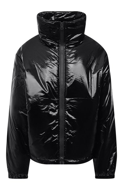 Черная объемная куртка с воротником-стойкой не только умеет справляться с капризами демисезонной погоды, но и знает, как попасть в фокус внимания. В этом ей помогает плотная гладкая ткань с виниловым блеском. Материал из переработанного нейлона не пропускает ветер и не промокает, а легкий наполнитель сохраняет тепло. Изделие завершили кр упным желтым патчем в виде фирменного эмодзи.