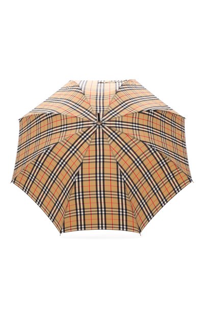 Мастера марки изготовили зонт из тонкого, но плотного нейлона с клетчатым принтом Vintage Check, выполненным в классической цветовой гамме. Материал быстро сохнет и легко очищается от загрязнений. За счет прочного каркаса из восьми металлических спиц аксессуар не деформируется даже во время сильного ветра. Чтобы модель б ыло удобно держать, ручку сделали изогнутой и обтянули мягкой кожей.