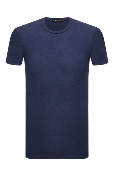 Синяя футболка с едва заметным меланжевым эффектом – удачная инвестиция в базовый гардероб. Для пошива модели с короткими рукавами использовали тонкое джерси из шелковистой вискозы, которая не хуже хлопка пропускает воздух и отводит влагу. Вещь из такого материала с добавлением нейлоновых волокон для прочности почти не ощущ ается на теле и не мешает свободно двигаться. Том Форд включил изделие в осенне-зимнюю коллекцию.