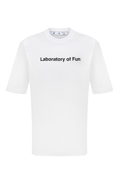 Коллекцию сезона осень-зима Верджил Абло назвал Laboratory of Fun. Такой черной надписью дизайнер декорировал белоснежную футболку, подчеркнув принадлежность изделия бренду контрастной эмблемой сзади. Для пошива модели с короткими рукавами использовали мягкий дышащий хлопок джерси, который не сковывает движения и почти не ощущается на теле.