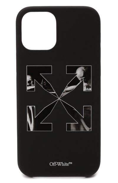 Аксессуары бренда легко узнать по знаковым стрелкам, вдохновленным маркировкой на грузах. Есть такой декор, фоном для которого стала репродукция картины Караваджо «Пишущий Святой Иероним», и на этом черном чехле для iPhone 12/12 Pro. Для изготовления модели использовали гибкий матовый полимер. Изделие из такого приятного на ощупь материала плотно облегает корпус смартфона и не скользит в руке и по столу.