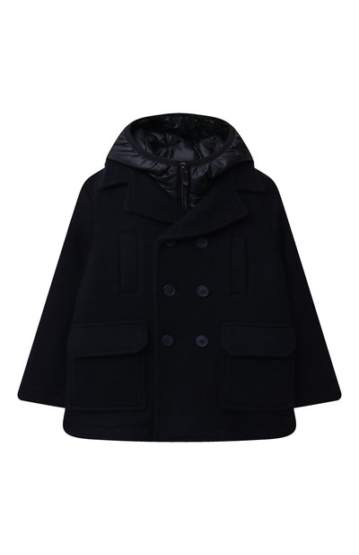 Синий бушлат станет удачной инвестицией в повседневный гардероб. Модель 3-в-1 дополнили жилетом с капюшоном на случай прохладных ветреных дней: в более теплую погоду эту деталь из непромокаемого нейлона, утепленную отборным пухом, можно носить отдельно. Для пошива пальто с широкими лацканами использовали мягкое полушерстяное сукно, которое поддерживает комфорт ную температуру.