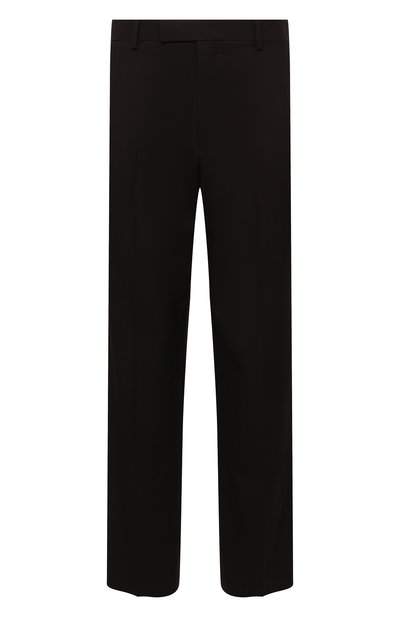 Брюки оттенка темного шоколада получились одновременно комфортными и практичными. Для изготовления прямой, не сковывающей движения модели с высокой посадкой использовали мягкий шерстяной твил. Этот материал поддерживает оптимальную температуру и почти не мнется, поэтому изделие из осенне-зимней коллекции будет выглядеть безупречно весь день.