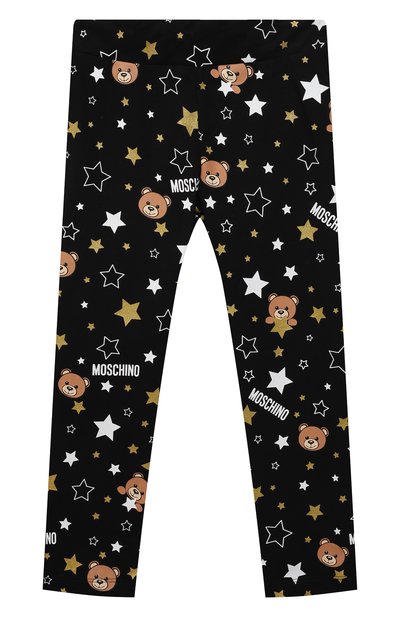 Угольно-черным легинсам добавили магию ночного неба. Матовый мягкий хлопок с эластановыми нитями усыпан мерцающими белыми и золотистыми звездами. Паттерн дополнили изображениями фирменного медведя и логотипами бренда. Широкий пояс оптимально фиксирует модель на талии.