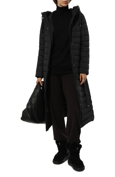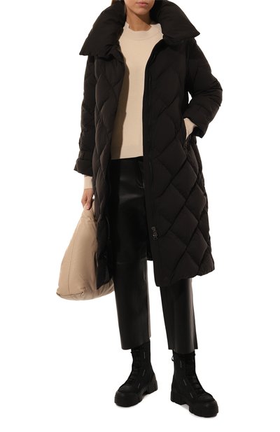 Черный пуховик из осенне-зимней коллекции легко пропишется в повседневном гардеробе. Для пошива лаконичного стеганого пальто с запахом и шалевым воротником, переходящим в капюшон, Беттина Лемпелиус выбрала плотный непродуваемый полиэстер. Тонкий слой утеплителя удерживает тепло, но при этом не утяжеляет изделие.