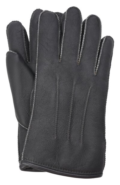 Серые перчатки из мягкой дубленой кожи получились в равной мере красивыми и комфортными. За счет специальной обработки аксессуар не промокает и не требует особенного ухода, а благодаря внутренней отделке из стриженой овчины изделие – идеально сохраняет тепло. В качестве декора – три объемных шва на внешней стороне.