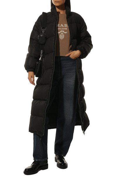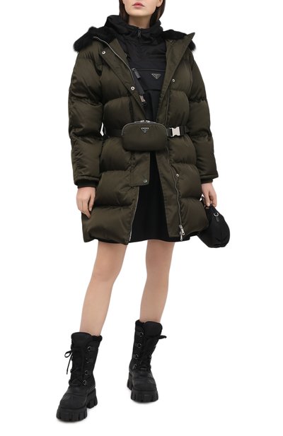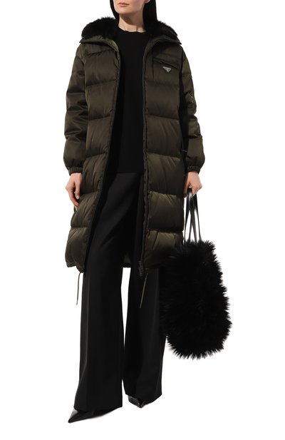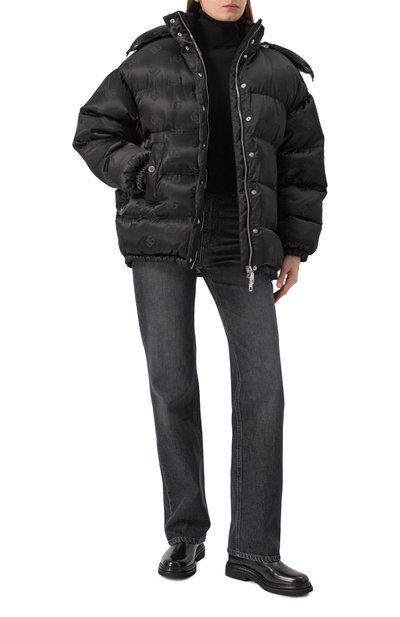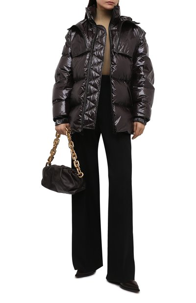 Стеганую куртку на гусином пуху изготовили из нейлона. Из такого же материала выполнили укороченный съемный жилет. Модель с воротником-стойкой дополнили боковыми карманами и еще одним сзади, в который можно спрятать капюшон.