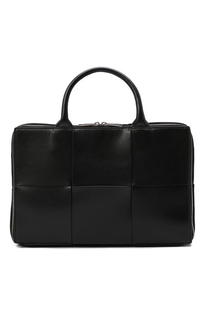 Черная сумка для ноутбука — наглядный пример бескомпр омиссного подхода к выбору материалов и исключительного мастерства сотрудников марки. Для создания модели использовали плотную мелкозернистую кожу, легкие заломы на которой — это не дефект, а признак естественного происхождения материала: они делают каждое изделие уникальным экземпляром. Чтобы сохранить фактуру, шкурки бережно обработали вручную. После разрезали на широкие полосы и вплели в подготовленную панель с предварительно сделанными прорезями. Такой формованный аксессуар с двумя ручками и съемным плечевым ремнем станет хорошим спутником в повседневных делах.