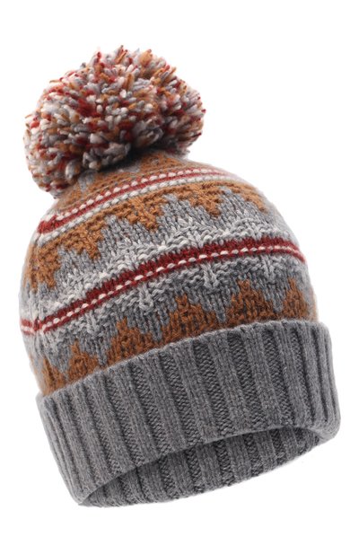 Серая шапка с разноцветным этническим узором идеально сочетается с пуховиком. Для создания аксессуара с объемным помпоном мастера марки использовали гордость Loro Piana — нежный кашемир. Пух монгольских коз вычесали и отобрали исключительно вручную специальными гребнями, оставляя только самые цельные и тонкие волокна. Сделать это можно один раз в год — весной, поэтому материал особенно цен ен.