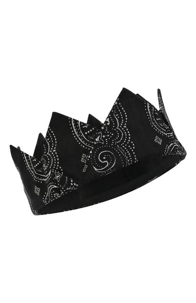 Традиционная бандана получила новое прочтение: черный аксессуар из тонкого хлопка выполнили в форме короны. Характерный для такой модели узор дополнили изображением миниатюрных 4G-монограмм, а монохромное исполнение поддержали серебристой пластиной с выгравированным логотипом бренда. Носить такое изделие можно как самостоятельно, так и вставив в отворот шапки бини.