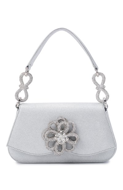 Небольшая сумка Carrie из осенне-зимней коллекции – один из тех аксессуаров, которые автоматически делают наряднее даже самый простой образ. Правильное настроение модели дизайнеры марки задали при помощи материала и декора. Серебристое изделие из мерцающего текстиля украсили на фигурном клапане крупным цветком, инкрустированным сверкающими кристаллами. Эту пряжку срифмовали с вставками на длинной ручке, напоминающими символ бесконечности.