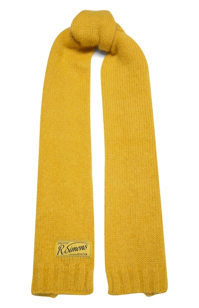 Широкий длинный шарф насыщенного желтого цвета способен стать стилеобразующей деталью в образе. Мастера марки связали аксессуар из мягкой плюшевой пряжи на основе пушистого мохера с добавлением нежной шерсти. Нити укрепили волокнами нейлона.