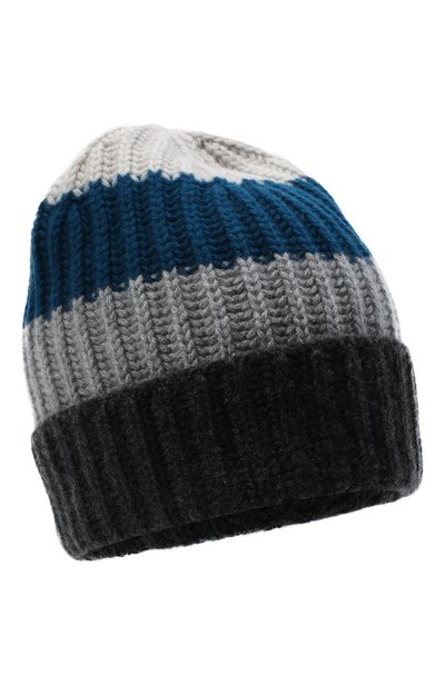 Бини получилась выразительной благодаря комбинации оттенков серого и синего, соединенных по принципу color block. Но особого внимания в шапке заслуживает плотная пряжа из нежнейшего baby-кашемира, толщина пуха которого не превышает 13,5 микрон по сравнению с 15 у обычного. Аксессуары из такого материала ценятся за исключительную деликатность и легкость.