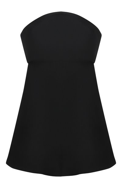 Черный цвет и полное отсутствие декора в случае с этим топом из весенне-летней коллекции компенсировали кроем. Изделию А-силуэта добавили провокации за счет открытой линии плеч. Для пошива модели использовали приятную на ощупь шерсть с добавлением волокон гладкого шелка.