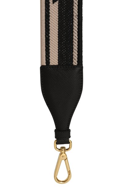 Широкий черный ремень поможет обновить любимую сумку. Для изготовления модели с крупным жаккардовым логотипом использовали прочный фактурный текстиль, который не рвется и не деформируется. Кожаные вставки, удерживающие золотистые карабины, декорировали брендированным тиснением.