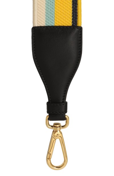 Широкий черный ремень поможет обновить любимую сумку. Для изготовления модели с крупным жаккардовым логотипом использовали проч ный фактурный текстиль, который не рвется и не деформируется. Кожаные вставки, удерживающие золотистые карабины, декорировали брендированным тиснением.