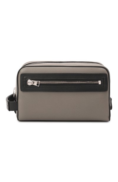 В этом несессере объединили премиальную кожу двух видов: из крупнозернистой, которая не боится царапин и потертостей, сложили основу, а зоны особой нагрузки укрепили гладкой прочной. Аксессуар из такого материала держит заданную форму и он хорошо очищается от загрязнений (достаточно протереть поверхность влажной салфеткой). Чтобы футляр можно было повесить на крючок, сбоку предусмотрели короткую ручку.