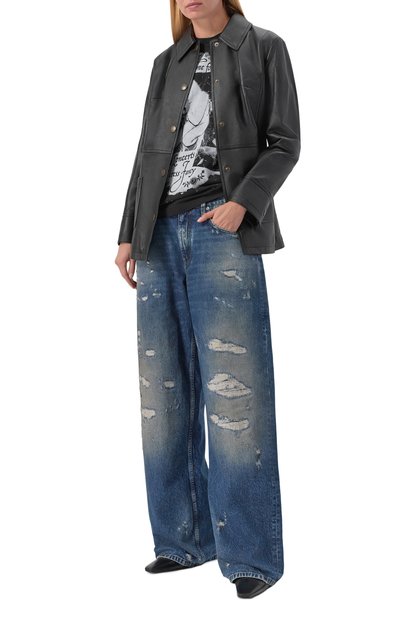 На примере этой модели из осенне-зимней коллекции Энтони Ваккарелло доказал, что черные брюки не обязательно должны быть классического кроя. Дизайнер марки, основанной Ивом Сен-Лораном, вывел изделие на новый уровень, словно объединив его с ботфортами на экстремально высоком устойчивом каблуке. Для пошива вещи использовали тонко выделанную мягкую замшу, которая хорошо драпируется, создавая объемные мягкие складки.