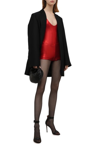 Одним из источников вдохновения при создании осенне-зимней коллекции для Энтони Ваккарелло стали образы артистки Peaches. Например, эти золотистые шорты дизайнер словно позаимствовал из концертного гардероба исполнительницы. Для пошива облегающей модели мастера марки, основанной Ивом Сен-Лораном, использовали эластичный материал с металлическим блеском.