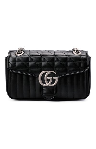 Сумка GG Marmont 2.0 из коллекции Aria, посвященной столетию марки, только притворяется беспомощной: несмотря на небольшие размеры, внутрь поместятся смартфон, паспорт, картхолдер и ключи. Для пошива модели со стеганым геометрическим узором Алессандро Микеле выбрал мягкую кожу. Изделие с комбинированным плечевым ремнем украсили пряжкой в виде GG-монограммы, составленной из инициалов Гуччио Гуччи.