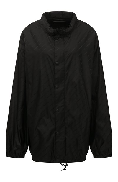 Черную куртку из весенне-летней коллекции выполнили в узнаваемой эстетике бренда, основанного Кристобалем Баленсиагой. Силуэт oversize с гипертрофированно длинными рукавами поддерживает жаккардовый узор в виде логотипа марки, напоминающий бегущу