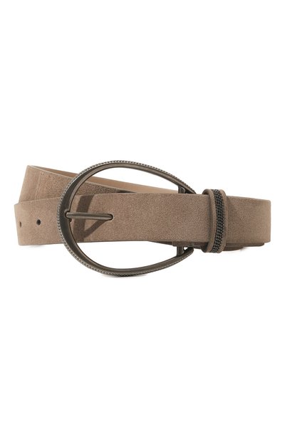 Темно-серый узкий ремень Oval Buckle выполнили из особенно мягкой и при этом прочной бархатистой замши из выделанной вручную телячьей кожи. Аксессуар регулируется крупной тонкой пряжкой, овальную форму которой подчеркнули гильошированным узором. С деликатным декором на фурнитуре перекликаются знаковые цепочки мониль на тренчике.