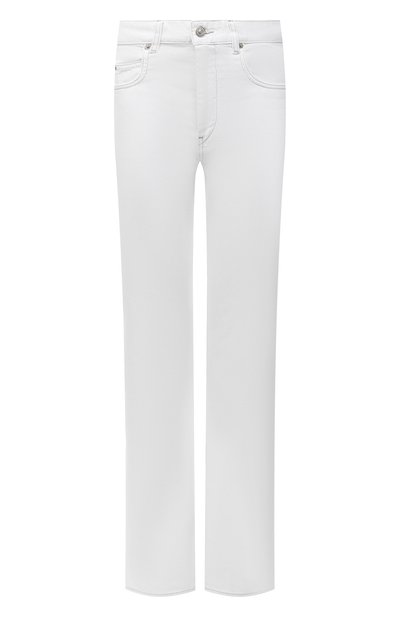 В весенне-летнюю коллекцию Изабель Маран включила прямые белоснежные джинсы, прошитые нитью оттенка экрю. Для изготовления прямой модели с высокой посадкой использовали мягкий, но прочный деним. Чтобы снизить вредное воздействие на природу, в состав ткани добавили переработанный хлопок: так получилось сократить выбросы, расход воды и количество текстильных отходов.