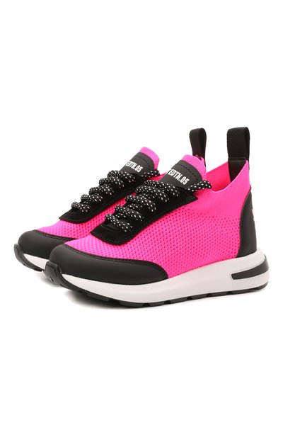 Эти ярко-розовые кроссовки с гибкой широкой подошвой будут незаменимы во время прогулок и активных игр. Эластичный сетчатый текстиль, который использовали для пошива модели, комфортно облегает стопу и хорошо пропускает воздух, не допуская перегрева. Чтобы изделие из мягкого материала не потеряло со временем форму, мыс и задник укрепили кожаными накладками. Обувь украшена фирменным изображением кленового листа и логотипом.