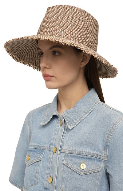 Кажется, будто широкополую шляпу с лентой грогрен вокруг тульи сплели из соломки, но на самом деле это фирменный материал Squishee, частично изготовленный из переработанного пластика. Он не боится влаги, пропускает воздух и блокирует 95% ультрафиолета. Внутри есть махровая деталь, которую легко снять для стирки.