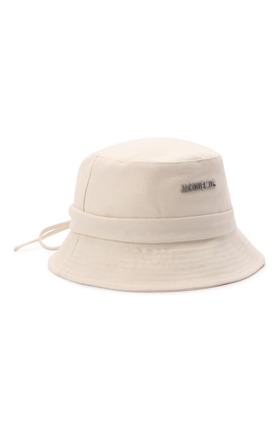 Кремовую панаму с покатыми стегаными полями мастера марки сшили из прочной хлопковой парусины. Головной убор из такого дышащего материала защищает от палящего солнца и почти не мнется, а за удобную посадку отвечает узкая лента, продетая в кулиску вдоль тульи. Спереди модель декорировали рельефным серебристым логотипом.