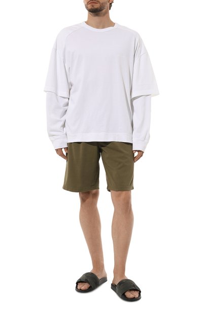 Принадлежность резиновых шлепанцев марке читается в рифленом узоре, отсылающем к фирменной технике плетения intrecciato, на широкой перемычке. Модель на гибкой подошве с литой стелькой дополнили протектором.