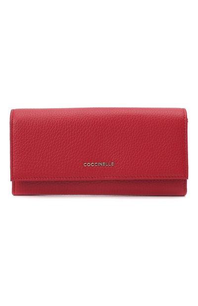 Кошелек цвета спелой клубники мастера марки сшили из мягкой мерейной кожи, которая меньше царапается и легко очищается от загрязнений благодаря бережной обработке. Для удобной организации пространства внутри п редусмотрели слоты для банковских карт, отделения для купюр и разделительный карман для монет. Широкий клапан декорировали миниатюрным золотистым логотипом.