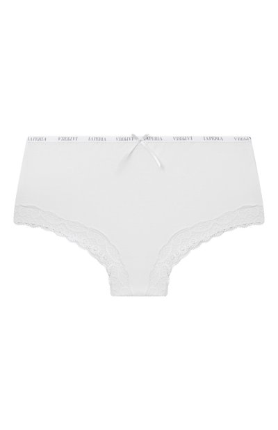 Белоснежные трусы с классической посадкой и плоскими незаметными швами украшены атласным бантом и мягким ажурным кружевом. На поясе — логотипы марки. Легкие эластичные слипы выполнены из приятного на ощупь, тонкого хлопка джерси с шелковистой текстурой.