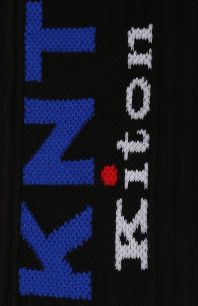 Для высоких черных носков использовали плотную пряжу из отборного хлопка. Сырье минимально обработали, чтобы сохранить все уникальные естественные свойства, а в нитях деликатную основу укрепили эластаном и нейлоном, поэтому белье прослужит долго. Синим, белым и красными цветами на модели выделили логотип марки, которому отвели место на манжете.