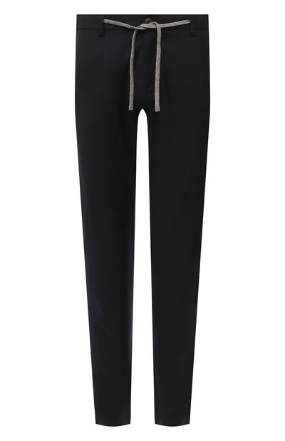 Команда марки, основанной братьями Канали, смягчила строгость дизайна синих лаконичных брюк, дополнив пояс кулиской с серым плетеным шнуром. Мастера бренда сшили модель из тонкой шелковистой шерсти, которая долго сохраняет опрятный внешний вид. Изделие вошло в коллекцию сезона весна-лето.