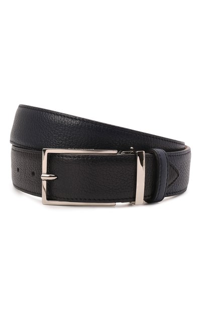 Чернильно-синий ремень классической ширины удачно дополнит и джинсы, и формальные брюки. Для изготовления модели мастера марки использовали матовую крупнозернистую кожу, на которой долго не появятся царапины и заломы. Аксессуар застегивается лаконичной прямоугольной пряжкой из полированного серебристого металла.