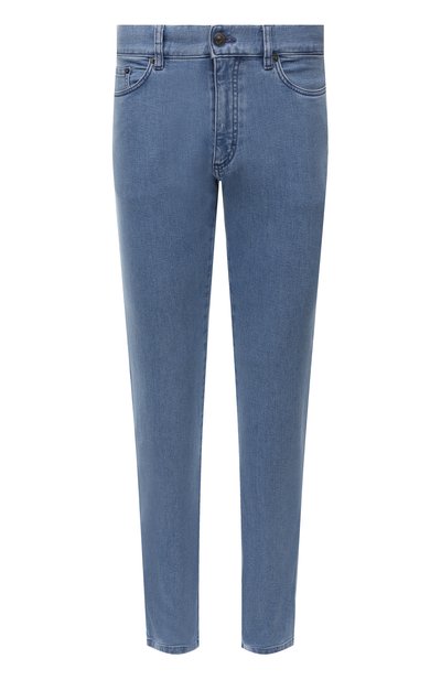 Светло-голубые джинсы с деликатными потертостями – базовый вариант, который подходит как к белой футболке, так и к рубашке или объемному кардигану. Зауженная модель слегка тянется, но не деформируется со временем благодаря включению в состав мягкого денима стрейчевых волокон. Брюки вошли в весенне-летнюю коллекцию.