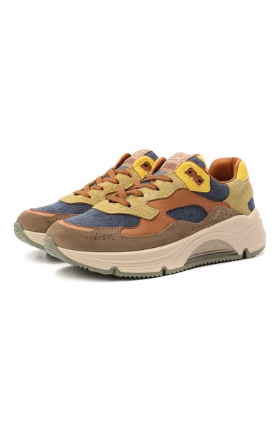 Мастера марки вручную сшили разноцветные кроссовки в технике color block из фактурного текстиля, гладкой кожи и прочной замши. Двойные верхние люверсы позволяют подобрать оптимальную плотность посадки. Комфорт при ходьбе и сцепление с дорогой обеспечивает упругая скульптурная подошва с нескользящим протектором.