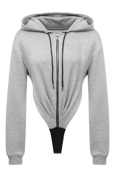 Созданное по мотивам худи меланжево-серое боди с регулируемым капюшоном и длинными рукавами сшито из мягкого эластичного хлопка джерси. Модель из коллекции сезона весна-лето застегивается на молнию. Нам нравится сочетать с джинсами и босоножками черного цвета, завершив образ серебристой сумкой.