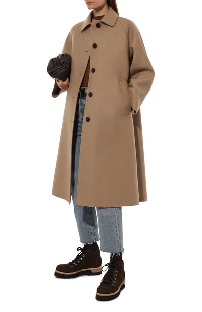 В этом пальто из весенне-летней коллекции отчетливо прослеживается расслабленный тон. Его дизайнеры бренда сформировали теплым бежевым оттенком, необработанными краями и мягким силуэтом. Чтобы его получить от подкладки отказались, а в материале сделали ставку на нежный войлок. Для его создания использовали сертифицированную шерсть с овец, обитаемых на фермах с бережным отношением к животным.
