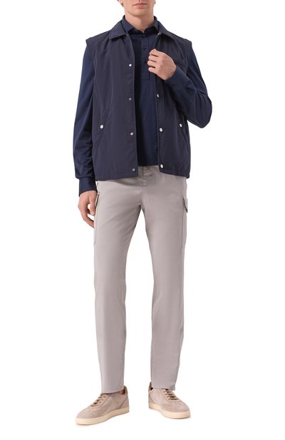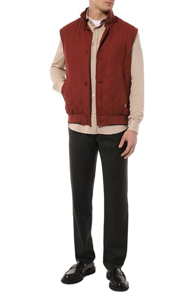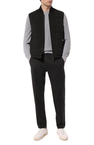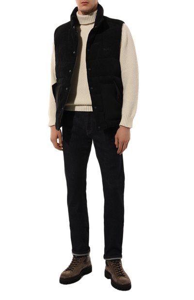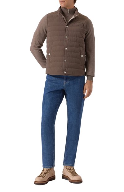 Прямой жилет Traveller выполнили из водоотталкивающей полиэстеровой микрофибры Windmate® с обработкой по технологии Storm System. Модель с кашемировым подкладом дополнили двумя парами карманов.