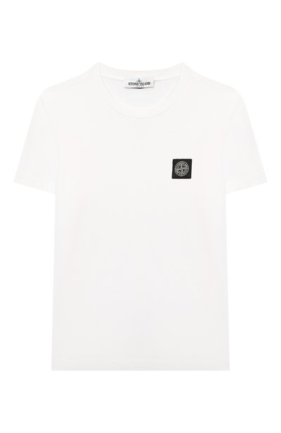 О принадлежности белой футболки бренду говорит небольшой черный патч со знаковой розой ветров и логотипом. Мастера марки выполнили модель с круглым вырезом из мягкого хлопкового джерси, которое хорошо тянется и не сковывает движения во время активных игр.