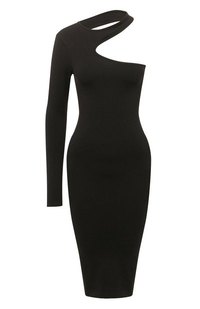 Это миди-платье доказывает, что минималистичные наряды могут приковывать взгляды так же успешно, как декорированные. Красноречивыми аргументами стали безупречный облегающий силуэт и асимметричный вырез, обнаживший левую руку и плечо. Мягкое джерси из нейлона стрейч подчеркивает такой крой и позволяет телу дышать. Черная модель вошла в весенне-летнюю коллекцию марки, основанной Хельмутом Лангом.
