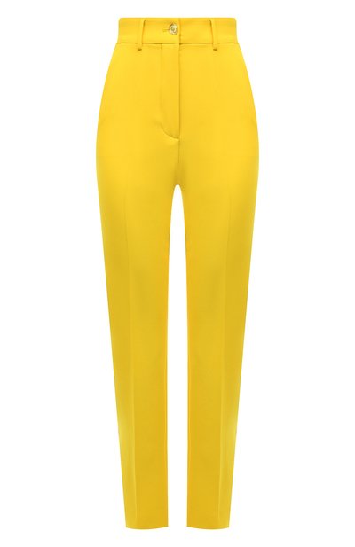 В сезоне весна-лето наши стилисты предлагают включить в свой репертуар брюки яркого желтого цвета. Такая модель станет идеальной основой для образа в стиле color block или дополнит комплект с принтованной рубашкой. Для пошива изделия со стрелками Доменико Дольче и Стефано Габбана выбрали мягкий эластичный твил с добавлением волокон шелковистой вискозы.