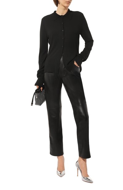 Союзку туфель Bree выполнили из полупрозрачного плексигласа, а задник – из телячьей кожи. Оба материала покрыты глиттером, поэтому пара с открытым зауженным мысом блестит на свету. Модель с внутренней отделкой из замши поставили на высокую шпильку.
