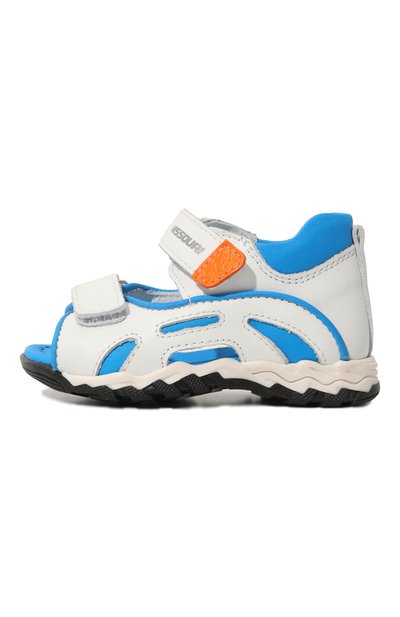 Сандалии на широкой подошве с формованной стелькой сшили из мягкой кожи. Точно отрегулировать посадку помогут ремешки велкро на союзке, подъеме и заднике.